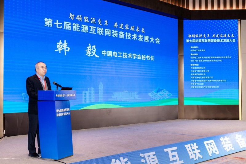 2025年12月19日至20日,第七届能源互联网装备技术发展大会暨中国电工技术学会能源互联网装备技术专业委员会二届三次委员扩大会议在郑州召开。中国工程院院士邱爱慈,中国电工技术学会副理事长、西安交通大学原常务副书记荣命哲,副理事长、清华大学副校长曾嵘出席大会,中国电工技术学会秘书长韩毅,郑州市人民政府副市长李凤芝,河南省能源规划建设局副局长范磊,中国电气装备集团科技创新部部长谢庆峰,中国电气装备集团总经理助理、许继集团党委书记、董事长李俊涛等领导出席会议并致辞。郑州市、郑东新区等有关部门领导,以及来自全国知名高校、科研院所学者,国资央企专家、能源装备知名企业家等200多名代表齐聚一堂,围绕“智领能源变革 共建零碳未来”主题,探讨热点问题,交流技术方向,展示创新成果。大会开通了直播,吸引近万人观看。大会开幕式由许继集团党委副书记、总经理韩书谟主持。
