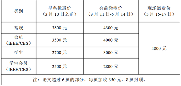 会议注册费包含会议资料、会议期间餐费、论文集编辑出版等相关费用,往返交通及住宿自理。被大会录用并有意愿出版的论文需要至少1位作者在2026年4月30日之前以“常规”或“会员”类别注册缴费。1位以常规或会员注册缴费的作者最多可以提交2篇论文,第2篇论文按照优惠价2000元计算。